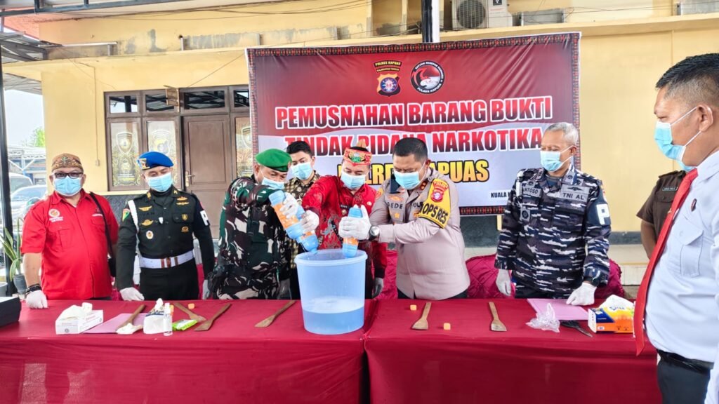 KUALA KAPUAS rubrikalteng.com Satuan Reserse Narkoba Polres Kapuas melaksanakan pemusnahan barang bukti narkotika jenis sabu seberat 96,46 gram pada Kamis (12/3/2026) di halaman belakang Mako Polres Kapuas. Kegiatan pemusnahan tersebut dipimpin langsung Kapolres Kapuas AKBP Gede Eka Yudharma, S.I.K., M.A.P dan dihadiri sejumlah unsur Forkopimda Kabupaten Kapuas, di antaranya Wakil Bupati Kapuas, perwakilan Kejaksaan Negeri […]