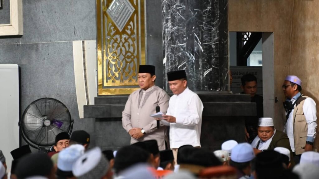 Gubernur Kalimantan Tengah, Agustiar Sabran, hadir bersama Wakil Gubernur Edy Pratowo di tengah jamaah. Kehadiran keduanya mencerminkan upaya mempererat hubungan antara pemerintah dan masyarakat dalam momentum hari besar keagamaan.